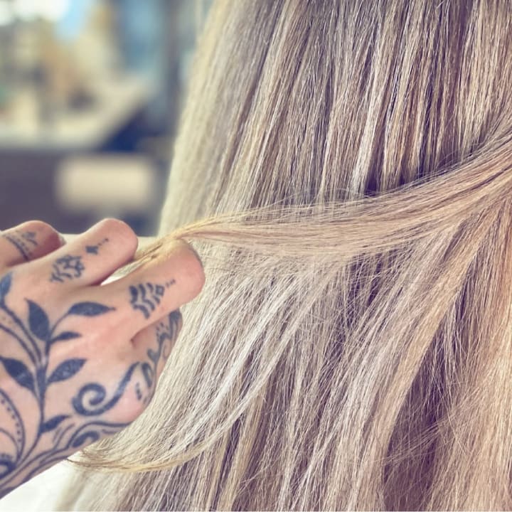 Farge, hårlengder som strekker seg under skulderbladene. Vask og føning inkludert.